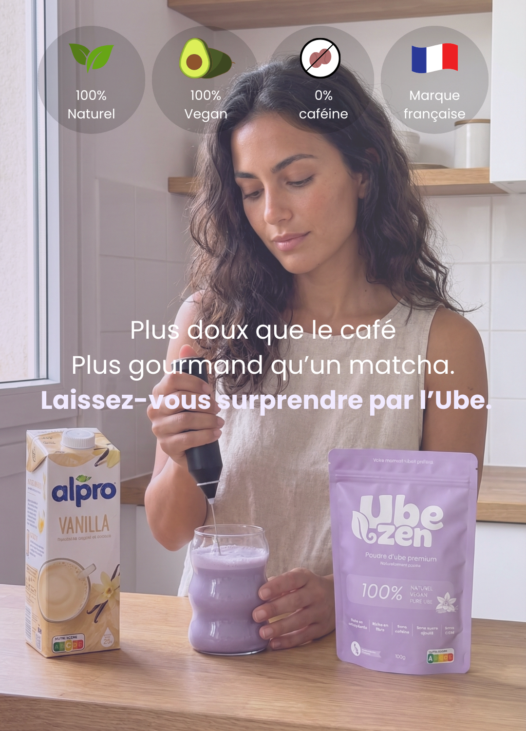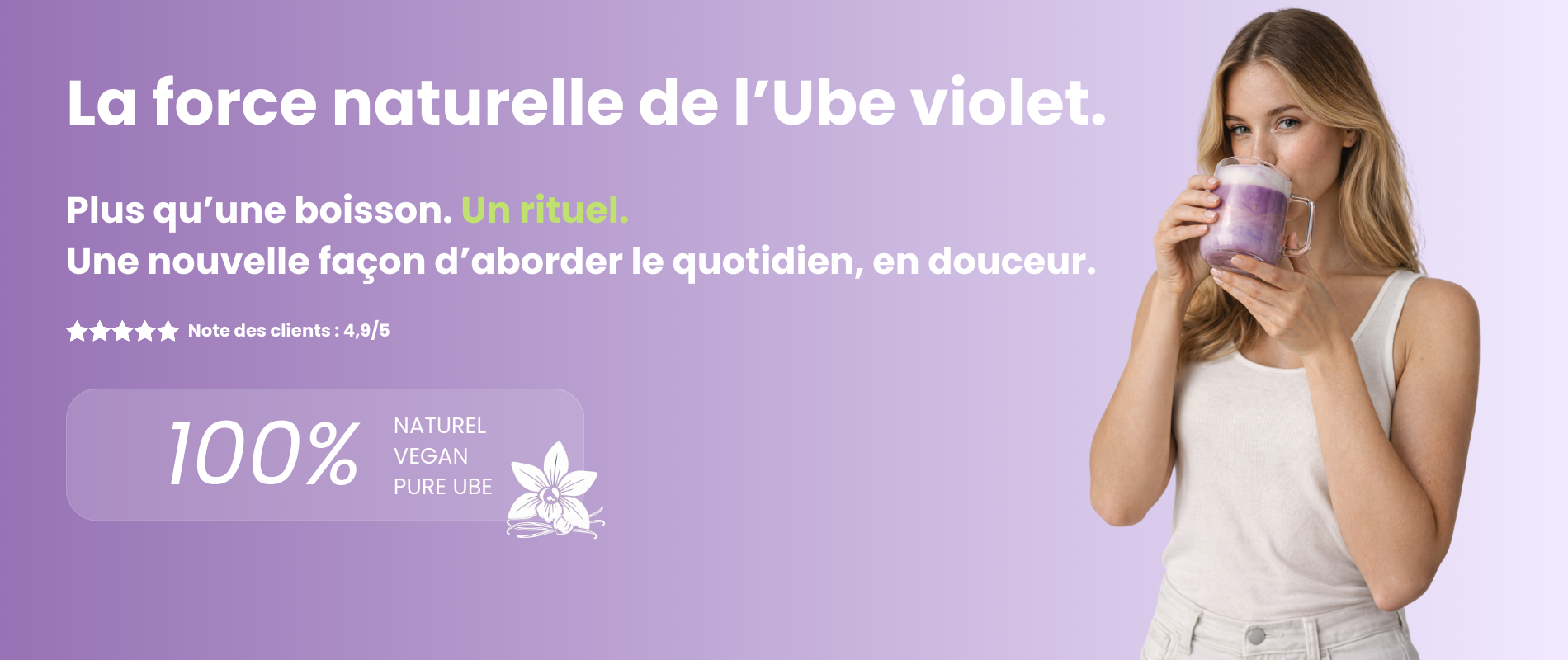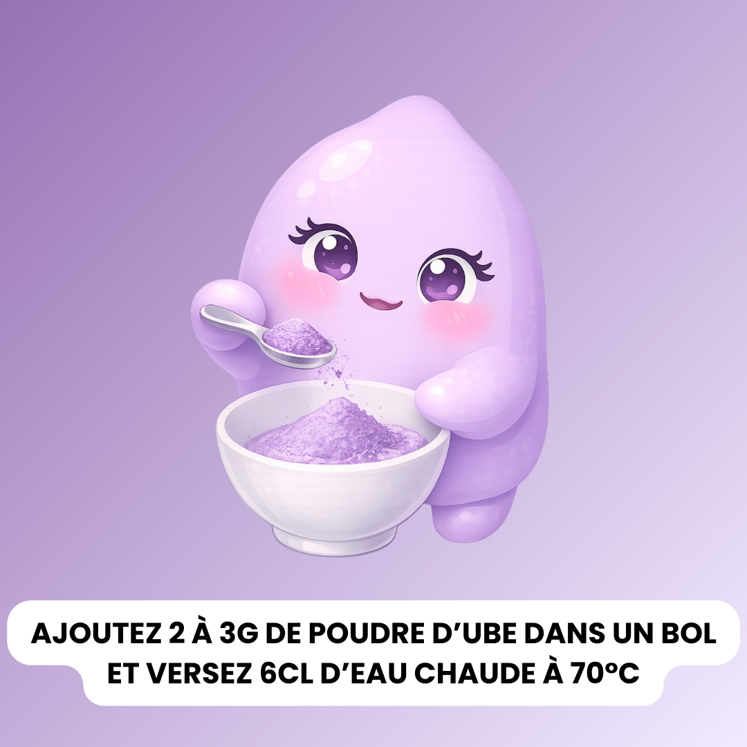 L'ube possède une saveur douce, naturellement sucrée et crémeuse, avec des notes de noisette et de vanille – idéale sans sucre ajouté.